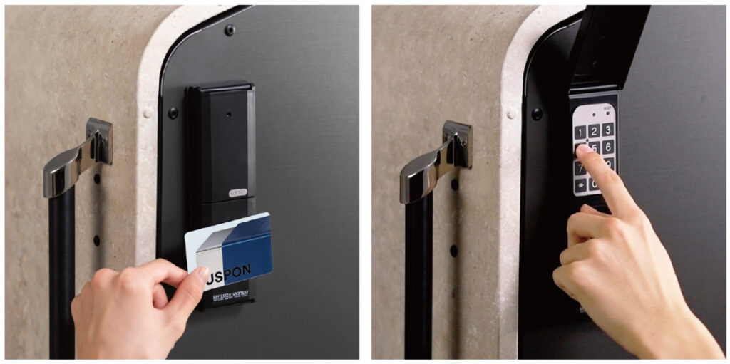 ・オートロック機能、暗証番号でのキーレス解錠、ICカード類でのタッチ解錠
